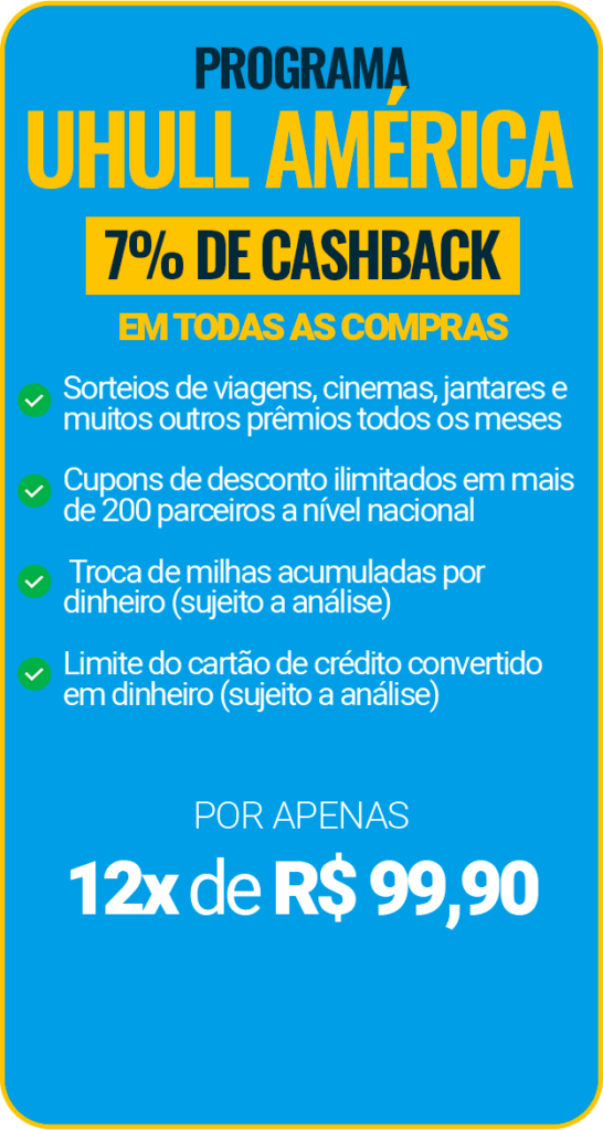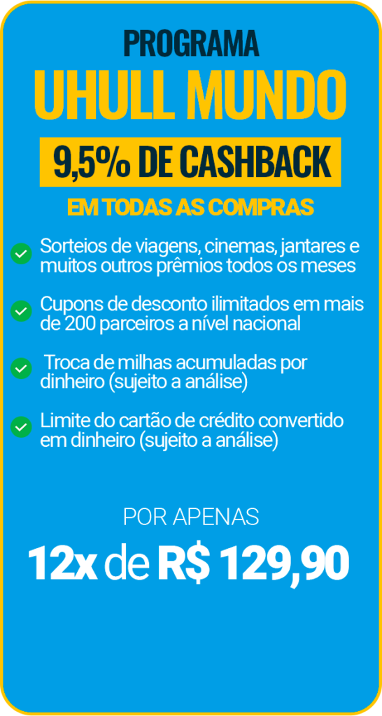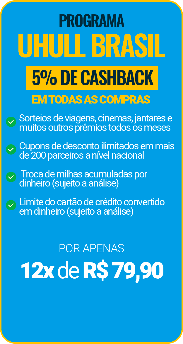 Cashback a partir de 5% em produtos de lazer e turismo contratados com a Uhull+
